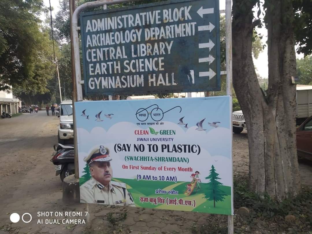 जाएगा। जीवाजी यूनिवर्सिटी कैंपस प्लास्टिक फ्री जोन ग्वालियर रेंज के एडीजीपी एवं आईजी श्री राजा बाबू सिंह की प्रेरणा और वहां के लोगों के सहयोग से घोषित हो गया है। इसकी शुरुआत ग्वालियर जोन के एडीजीपी श्री राजा बाबू सिंह ने स्वयं श्रमदान करके की थी और हर माह के प्रथम सप्ताह के पहले रविवार को वे स्वयं वहाँ श्रमदान करने जाते हैं और उनका सहयोग देने के लिए तमाम युवक युक्तियां भी इकट्ठे होते हैं। उनकी इस पहल से प्रेरणा लेकर वहां घूमने आने वाले एवं छात्र छात्राओं ने बैनर पोस्टर लगा दिए हैं ताकि वहां कचरा प्लास्टिक पन्नी आदि न डालें और और क्षेत्र स्वच्छ रहें।