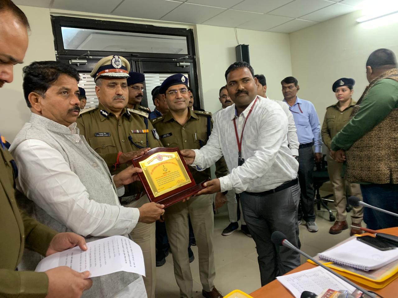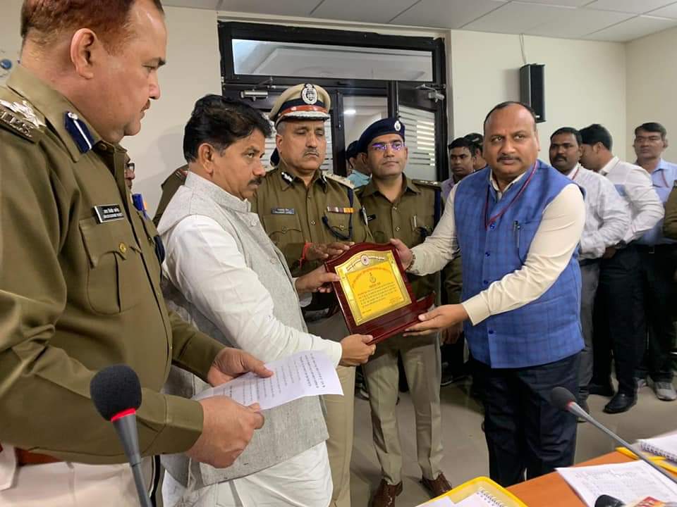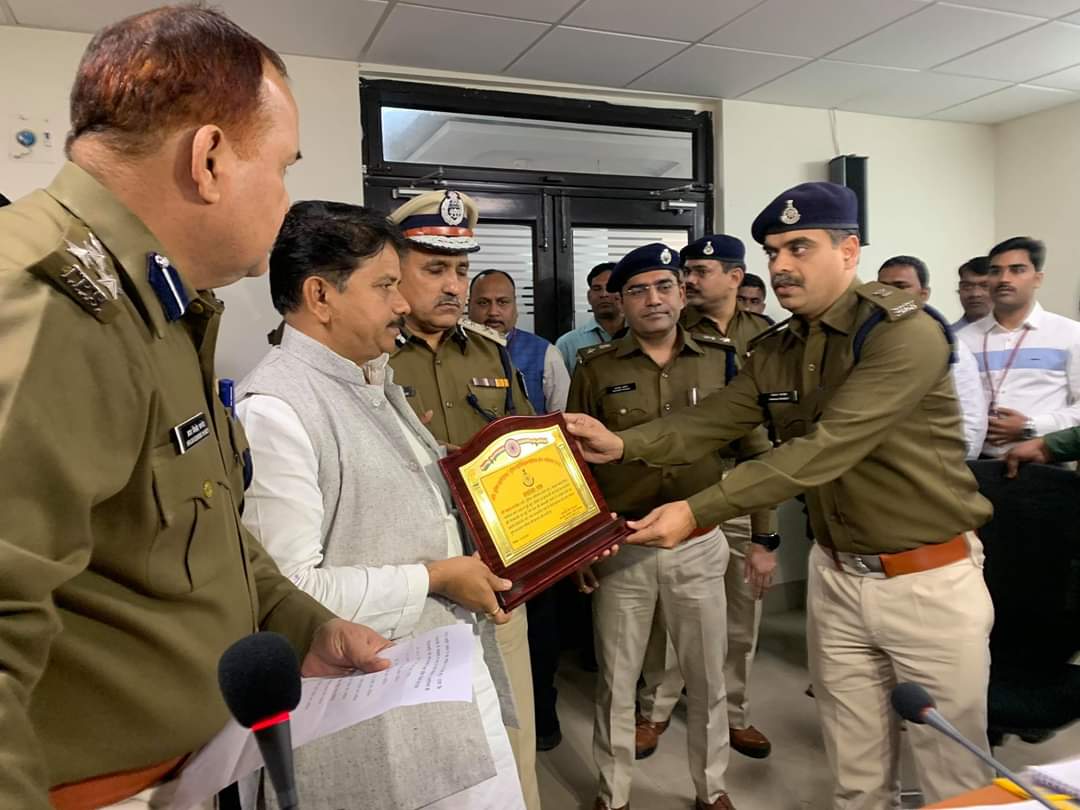 गृहमंत्री श्री बाला बच्चन ने ग्वालियर के पुलिस को अच्छा कार्य करने के लिए किया सम्मानित