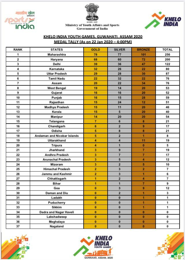 इस 13 दिवसीय प्रतियोगिता के दौरान महाराष्ट्र ने 78 स्वर्ण, 77 रजत और 101 कांस्य पदक के साथ अपनी लगातार दूसरी खेलो इंडिया युवा खेल ट्रॉफी जीती.