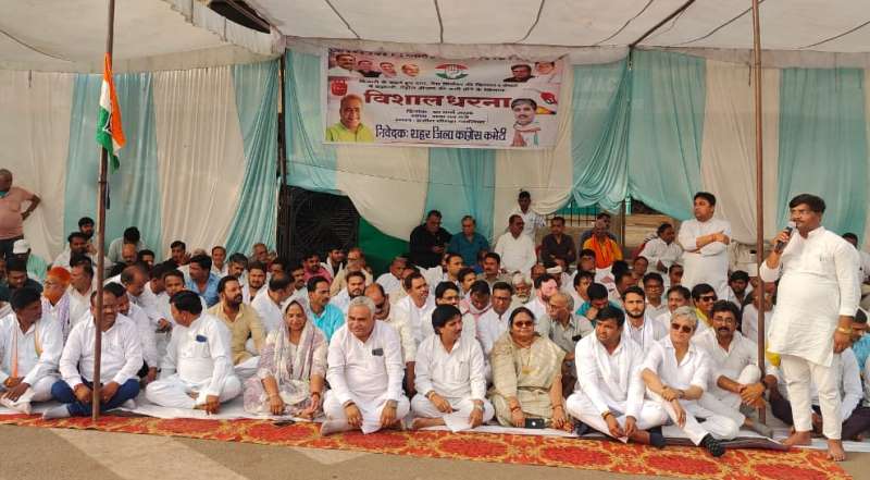ग्वालियर. शहर जिला कांग्रेस कमेटी ने सोमवार को हजीरा चौराहा पर धरना देते हुए प्रदर्शन किया। सिलेंण्डर की बढ़ती कीमतों, अपर्याप्त आपूति, बिजली दरों में वृद्धि और पेट