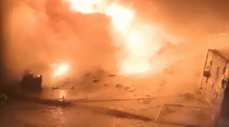 ग्वालियर. आनंदनगर स्थित एक इलेक्ट्रॉनिक गोदाम में रखे सामान में गुरूवार की रात जबरदस्त आग लग गयी। रात को लगभग 11 बजे लगी आग से गोदाम में रखा लाखों रूपये का इलेक्ट्र